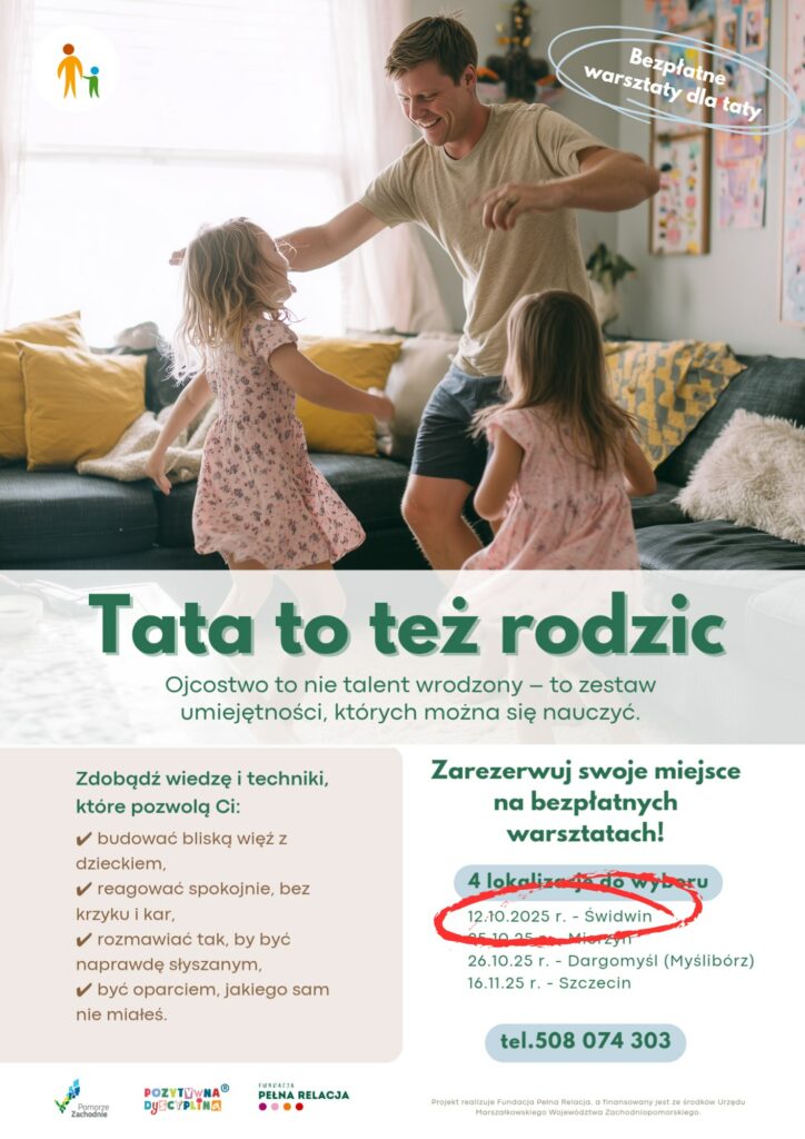 Więcej informacji i formularz zapisów: https://www.swidwin.pl/asp/tata-to-tez-rodzic-zaproszenie-na-warsztaty,6,artykul,1,10957